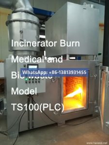 Mmedical waste burner capable of getting rid of approximately 0.5 cubic meter of transmittable or pathological waste.